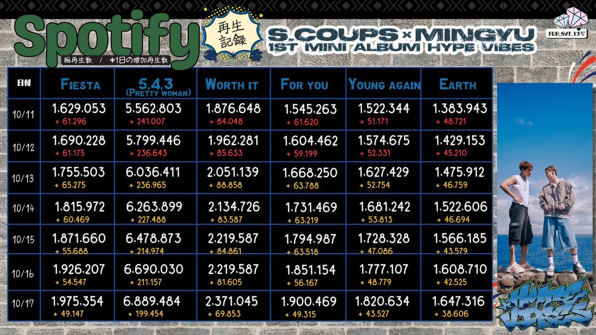 返信先:@pledis_171🟢Spotify再生回数記録🟢10/15 S.COUPS×MINGYU 5,4,3(Pretty woman) 6,478,873(+214,974) #CxM HYPE_VIBES ▶️open.spotify.com/intl-ja/album/… #에스쿱스X민규 #SEVENTEEN #세븐틴 @pledis_17 @pledis_17jp pic.x.com/MSANGVbx8j