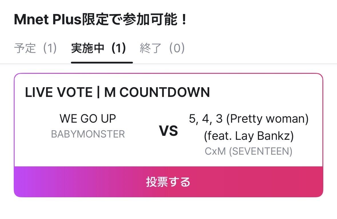 🟥 拡散してね📢´- 🟥 M COUNTDOWN CARATちゃん、ライブ🗳始まってる 1デバイス5回投票してね #543_Prettywoman へ‼️ 最後までふぁいてぃーん✊🏻´‐ #에스쿱스X민규 #HYPE_VIBES pic.x.com/Zh32hKsuqi x.com/SVT_Banzai/sta…