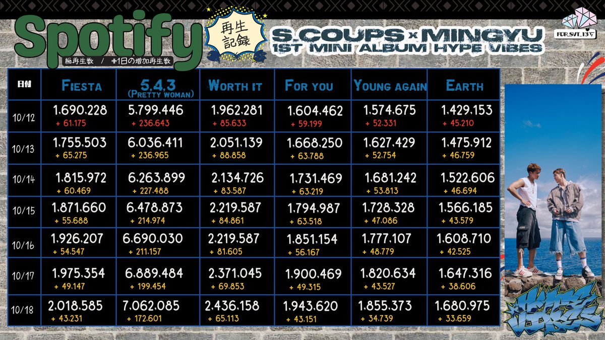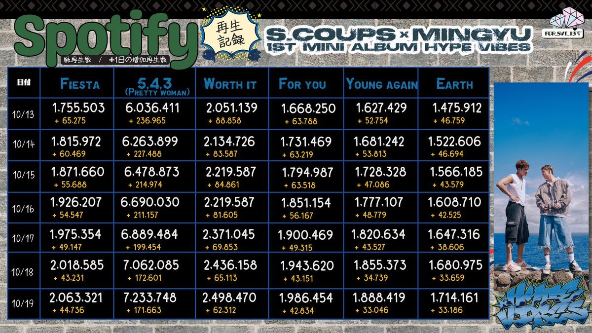 返信先:@pledis_171🟢Spotify再生回数記録🟢10/19 Third week record📝 S.COUPS×MINGYU 5,4,3(Pretty woman)7,233,748(+171,663) #CxM HYPE_VIBES ▶️open.spotify.com/intl-ja/album/… #에스쿱스X민규 #SEVENTEEN #세븐틴 @pledis_17 @pledis_17jp pic.x.com/PFhc9Pkb3i