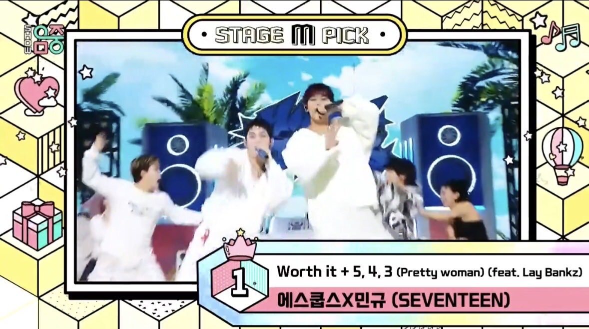 🏆 STAGE M PICK : MBC 쇼! 음악중심 919회차 #스테이지엠픽 1위 아티스트는 . . #CxM #에스쿱스X민규 #543_Prettywoman #SEVENTEEN 축하드립니다 🕶️💎🥳🥳 *트로피는 해외 투어 종료 후, 아티스트에게 직접 전달됩니다 ✨