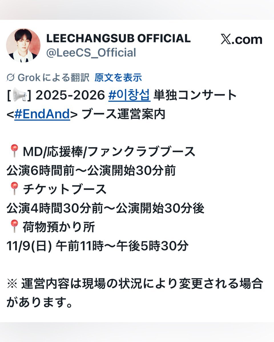 2025.11.07-08、09 今日からそぷ🍑の新しいSTORYの始まり🥰 行かれるメロディ楽しんで来てね🥳 2025.11.07-08、09 #이창섭 #チャンソプ #LEECHANGSUB #엔드앤드 #EndAnd pic.x.com/QYlJhl4A9c