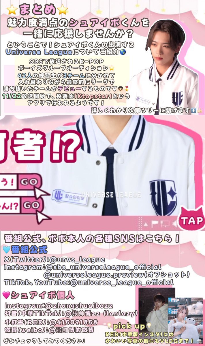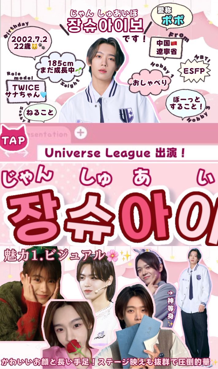 Universe League #장슈아이보 くんの布教シートです💚✨ “One look and you’ll remember me.” 貴方もボボを忘れられなくなること間違いなし! #유니버스리그 #universeleague #장슈아이보 #ZHANG_SHUAIBO #シュアイボ #张帅博 #유니버스리그_트친소 #universeleague見る人と繋がりたい pic.x.com/spz7kjgCPR