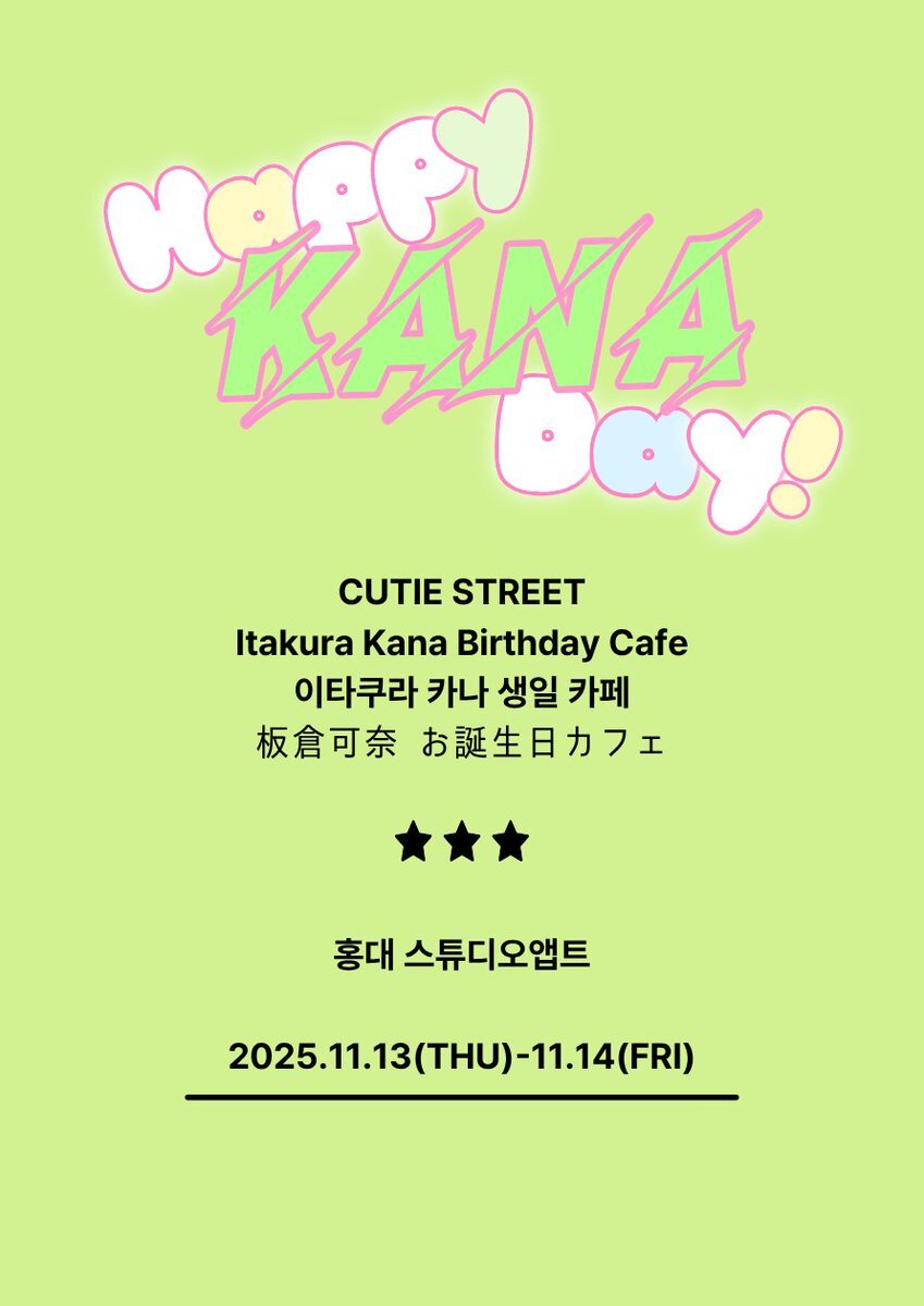 2025 이타쿠라 카나 생일 카페 2025 板倉可奈 お誕生日カフェ 📍홍대 스튜디오앱트 📅2025.11.13(THU)-11.14(FRI) COMING SOON! #CUTIESTREET #이타쿠라카나 #板倉可奈 #板倉可奈生誕祭2025 #카나_생일추카나 #KANADAY pic.x.com/rzSQEWgdD5