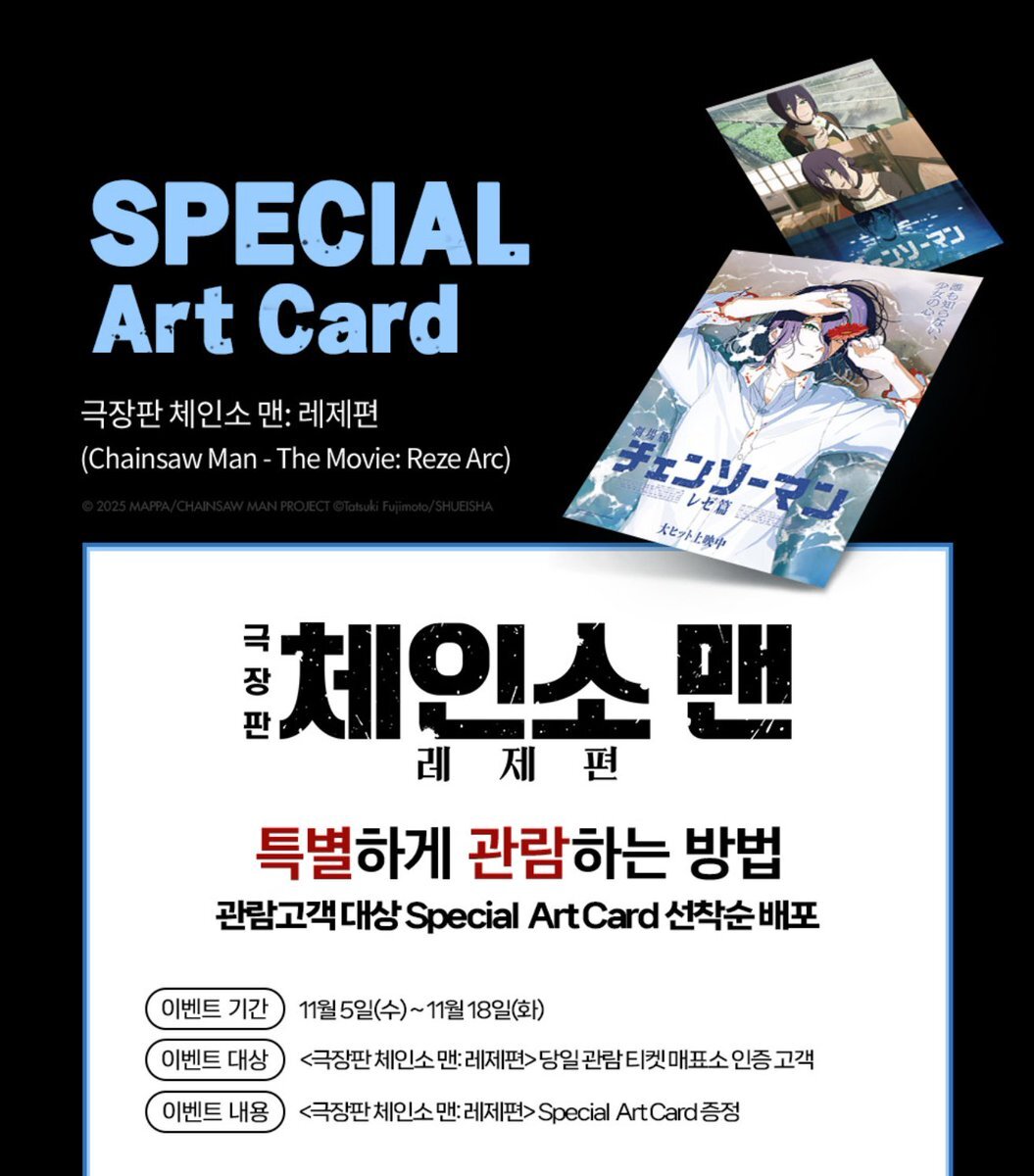 👉 대리수령 ✔️ <극장판 체인소 맨: 레제편> 아트카드 ✔️ 롯데시네마 11/5~ (수) 이후 수령 ✔️ 1개당 16000원 (무료 배송 적립 1회) 배송비 별도, 합배송 가능 チェンソーマン レゼ篇 Chainsaw Man The Movie: Reze Arc 레제 #대리수령 #체인소맨 #チェンソーマン #chainsawman #레제 pic.x.com/NU3BDFsSop