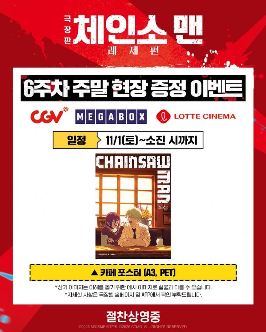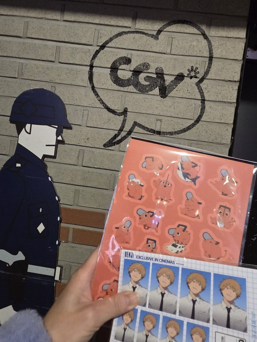 CGVワンシムニにて チェンソーマン観てきたにわか🙆 特典2つGET🫶 ポチタステッカーかわよい デンジくんのお顔普通に好き #チェンソーマンレゼ篇 #체인소맨레제편 #CGV왕십리 pic.x.com/C904kgxAYY