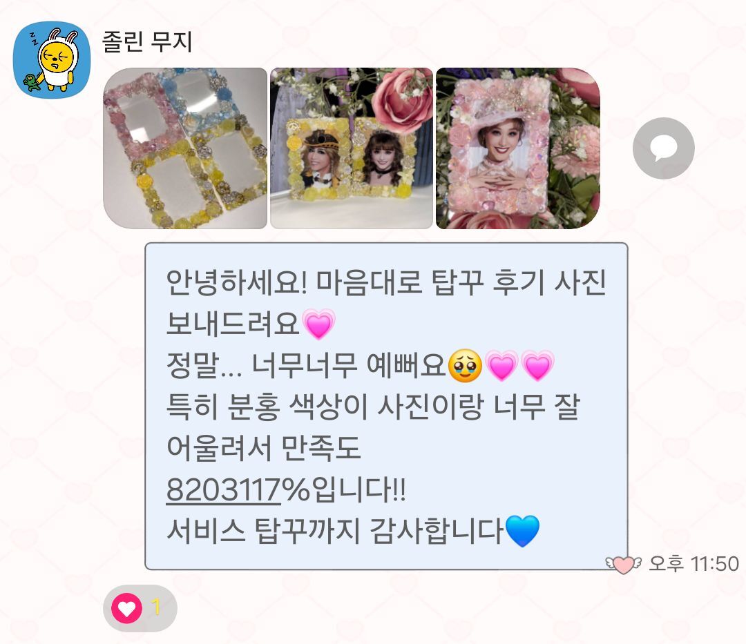 꺄 탑꾸 당첨된거 무사히 잘 받았습니다! 보자마자 예뻐서 꺄르르르르 됐어용 ,, 이렇게 호화로운(? 건 처음 써보는데 제 최애가 더 빛이 나네요🤗✨ 다음에 구매하게 되면 찾아가겠습니다 진짜 예뻐요! 잘 쓰겠습니다◟✩ 감사합니다💝 @harunoprintemps