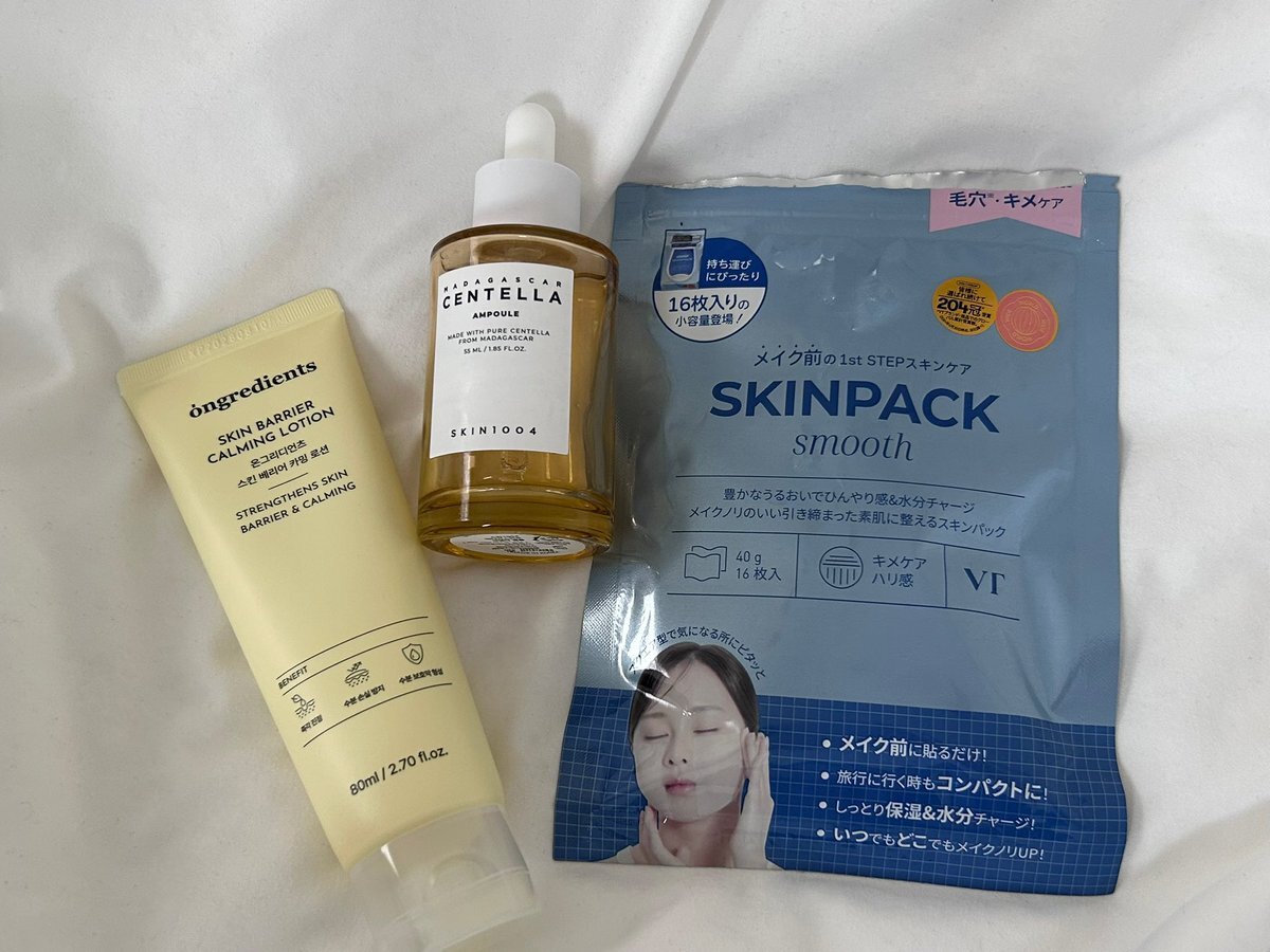 本日のメイク前スキンケア…✨ ルセラのメイクさんがおすすめしてた方法に挑戦♡ skin1004アンプル→トナパ→ongredientsローションが丁度あったので👍軽めで自分にはめちゃ合ってた,,>᎑<,, vtのスキンパックはドンコスで頂いて初出しですが、保湿力もグッドでした! #コスメ垢 #코덕트친소 pic.x.com/omLn6DfpCS