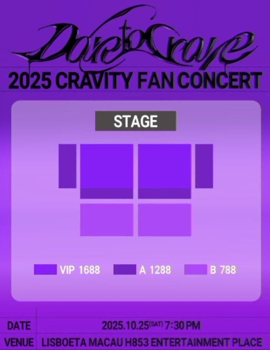 WTS 2025 #CRAVITY FAN CONCERT [Dare to Crave] in 🇲🇴 MACAU Cravity マカオ コンサート チケット代行 VIP 1-3列 /4-10列 Local and international fans DM✅ #CRAVITY #cravity好きな人と繋がりたい #CRAVITYinMACAU #크래비티 #DaretoCrave pic.x.com/iwbGN6HkvD