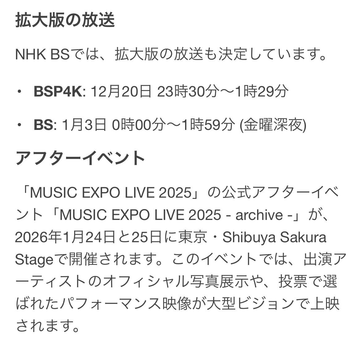 📣およそ2時間の拡大版 🪩MUSIC EXPO 2025 SPECIAL EDITION🪩 📺️12月20日 (土) 23:30~BSP4K ライブパフォーマンスを中心に映像を追加⚡️ 未公開のスペシャルトークセッションも🗣️ 🌟#BEFIRST × #CORTIS 🌟#4EVE × #KAWAIILAB 放送は今夜BSP4Kで✨お楽しみに👋 nhk.jp/g/music/blog/x…