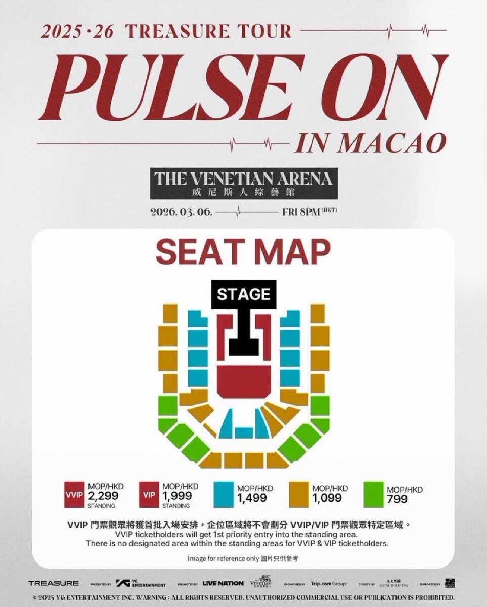 2025-26 TREASURE TOUR [PULSE ON] IN Macau 🇲🇴 concert ticket 🎫 トレジャー マカオ コンサート チケット代行 트레저 마카오 콘서트 대리티켓팅 양도 VVIP 2299 VIP 1999 1499 1099 799 公演日 2026年 3月6日 #トレジャー #TREASURE #트레저 #チケット代行 #TREASURE_PULSE_ON_IN_Macau pic.x.com/xpwlv0NTAL