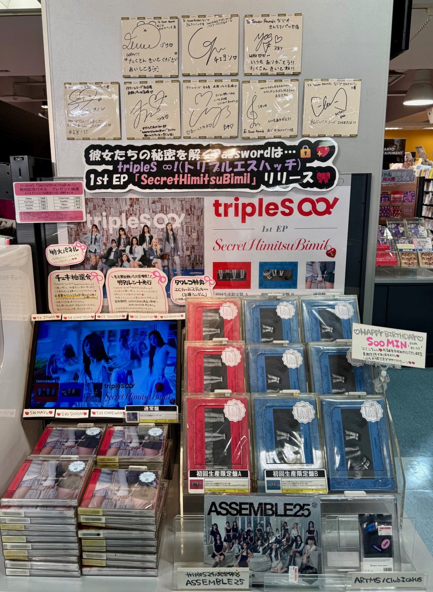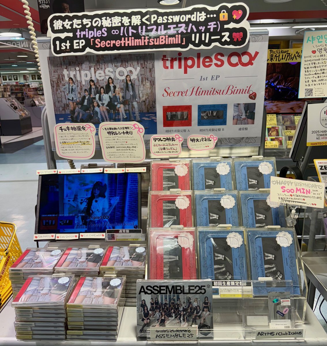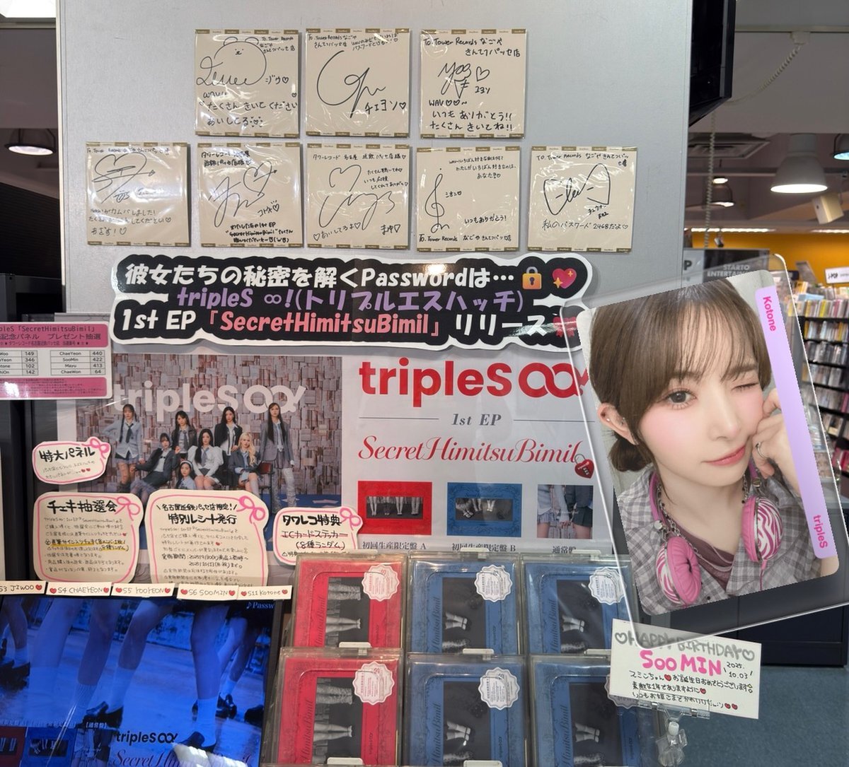 【#tripleS】 tripleS ∞! Japan 1st EP『SecretHimitsuBimil』 大好評発売中🩷 🗝️チェキ抽選会 🗝️メッセージレシート発行 blog.livedoor.jp/towerrecords_k… チェキはあたりが全て出次第終了となります! ぜひお早めに✨ 特大パネルも引き続き掲出中です💜 #트리플에스 #パッセKPOP @tripleS_JAPAN