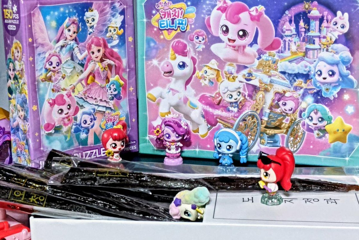 「SAMG様からティニピンのパズルと韓国の伝統お菓子をいただいてとってもラッキーだわ」 「シーズン5のパズルで遊びながらシーズン6の脚本を書くネネ」 「桔梗の正果は甘くてもちもちした食感で美味しいワワ」 「こっそり隠れてつまみ食いしてる子がいるオシャ?」 #ティニピン #티니핑 pic.x.com/NkmW71NEtu
