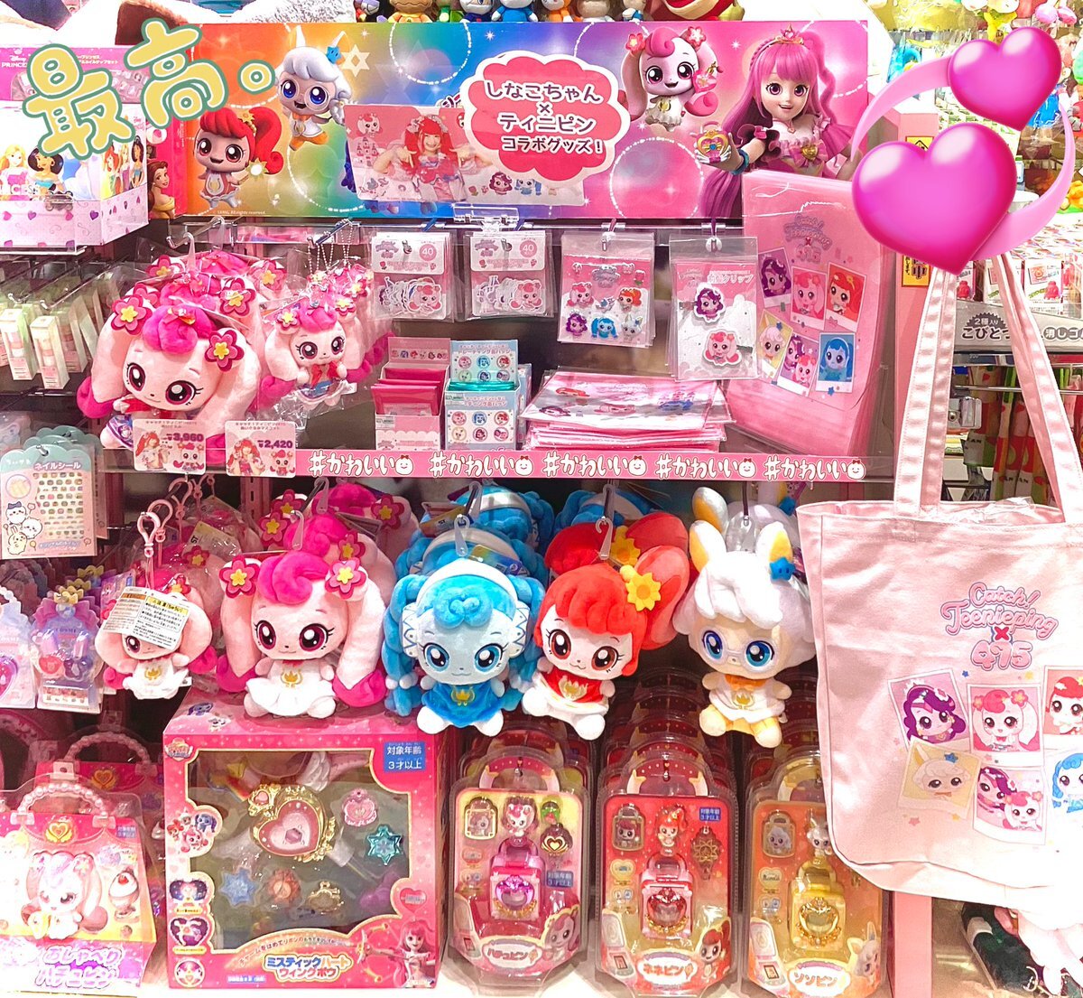 『シークレット キャッチ!ティニピン(알쏭달쏭 캐치! 티니핑)』 ラッキーピン周り新商品、しなこさんコラボ商品、良いサイズのぬいぐるみ、並び始めております! #ティニピン #티니핑 pic.x.com/F8VnOYl9Bx