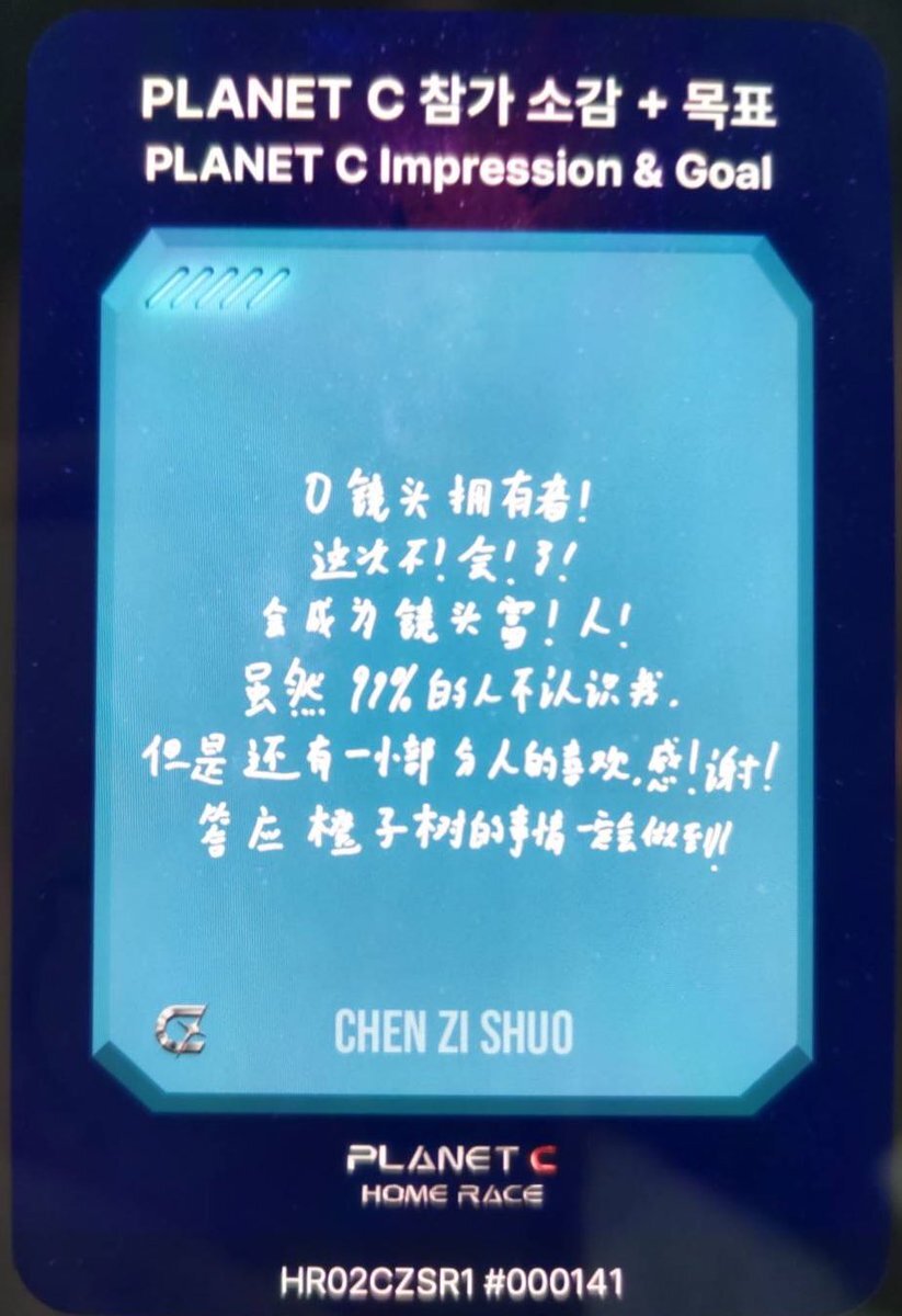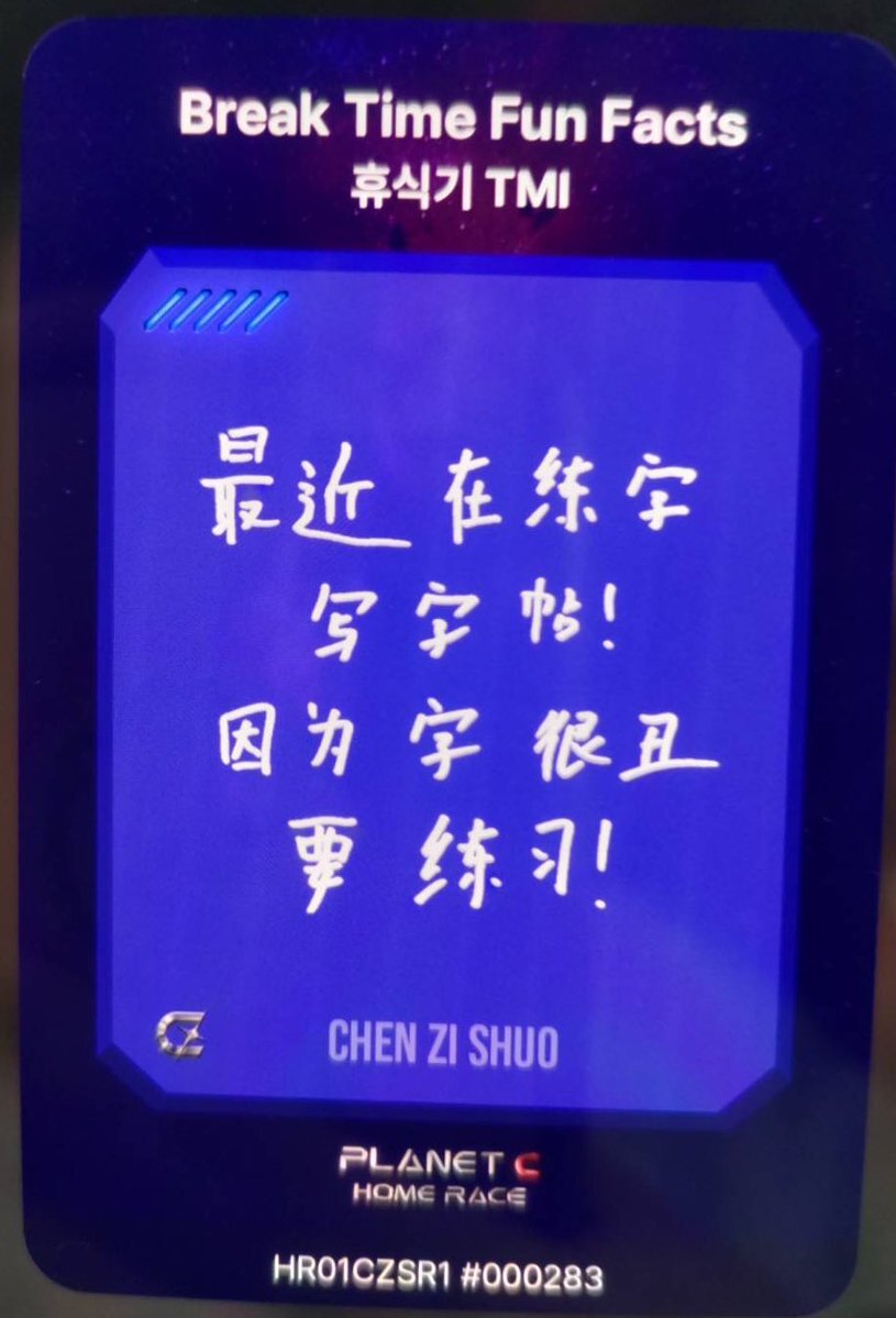 チェン・ズーシュオ レースカード#1 #PLANETC #HOMERACE #플래닛C #홈레이스 #陈梓烁 #천즈슈어 #chenzishuo #チェンズーシュオ pic.x.com/AorLryFnm5