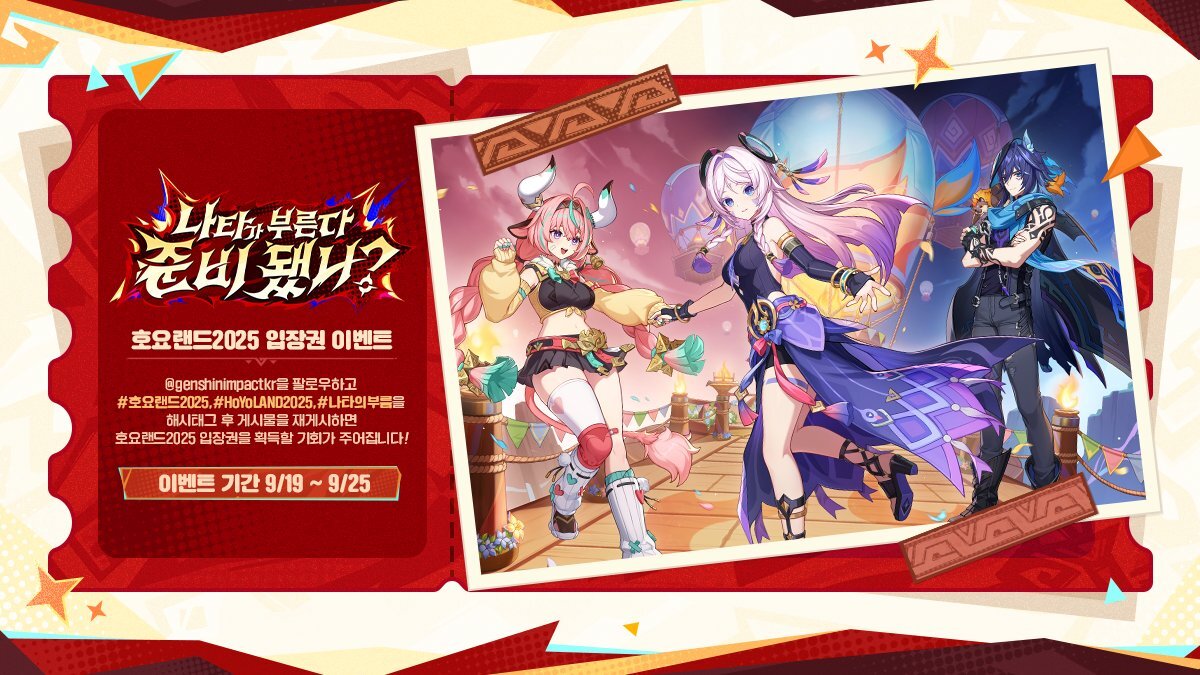 🔥호요랜드2025 | 나타가 부른다, 준비됐나? 상세 안내 호요랜드2025 입장권 이벤트 진행 중! #나타의부름 여행자, 안녕! ✨ 드디어 그 순간이 왔어! 💓 호요랜드2025 <나타가 부른다, 준비됐나?> 초대장이야!🔥 ✧행사 기간 2025/10/9(목)~2025/10/12(일) (4일간) ✧행사 장소 KINTEX 제2전시장