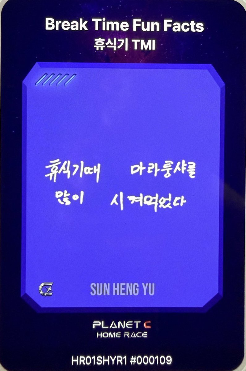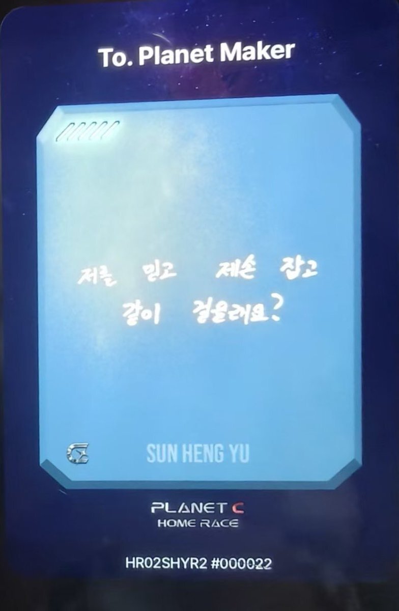 ホームレース レースカード セルカ ホンユー(日本語訳 ) 『今回はデビューのために皆様を驚かせてあげます』 『僕を信じて僕の手を握って一緒に歩いてくれる?』 #孫亨裕 #SUNHENGYU #スンホンユー #PLANETC #HOMERACE #플래닛C #홈레이스 pic.x.com/oqA2mbMLgc
