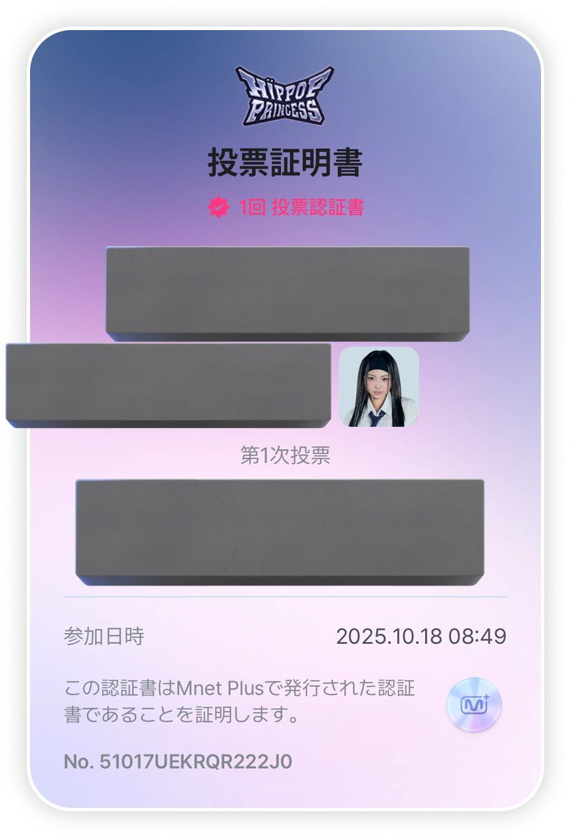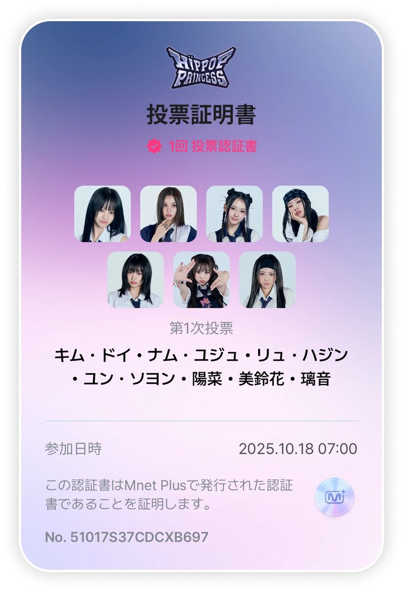 投票完了✅ 実力高くて、ほんと誰に投票するか悩むー。 #ヒポプリ #힙팝프린세스 #HipPopPrincess #Mnet #MnetPlus #UNEXT pic.x.com/CRUmAvB8lr