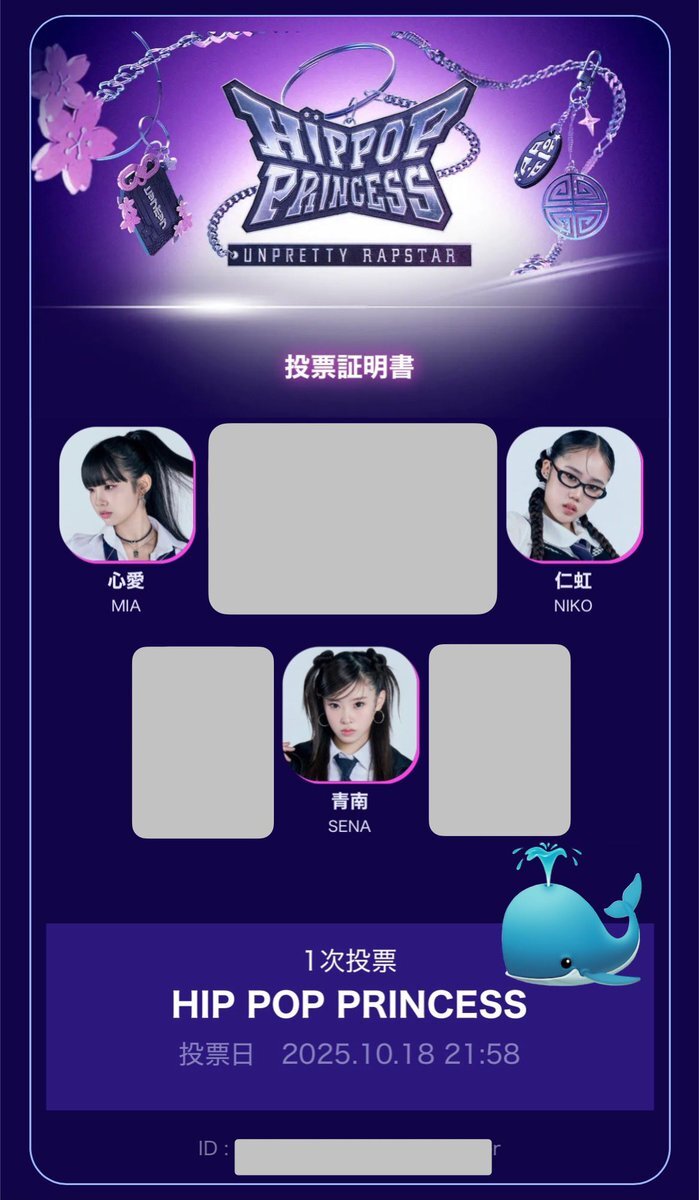 今日の投票。 推しのニコちゃんと枠交換の声がけしてくれた方がいたので、セナちゃん入れた。 昨日も入れてたけど☺️ ニコちゃんと枠交換してくれる方、募集してます! #ヒポプリ #힙팝프린세스 #HipPopPrincess #Mnet #MnetPlus #UNEXT pic.x.com/C7diMYb7rX