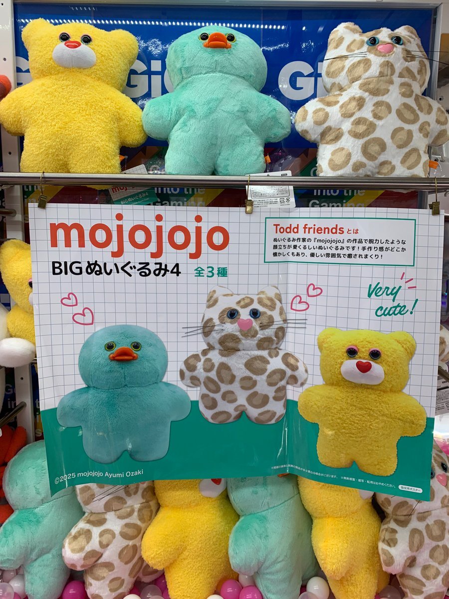 【景品入荷】 mojojojo BIGぬいぐるみ4 入荷しました! ぜひGETしてくださいね! #GiGO天童 #mojojojo pic.x.com/9iAdyom29U