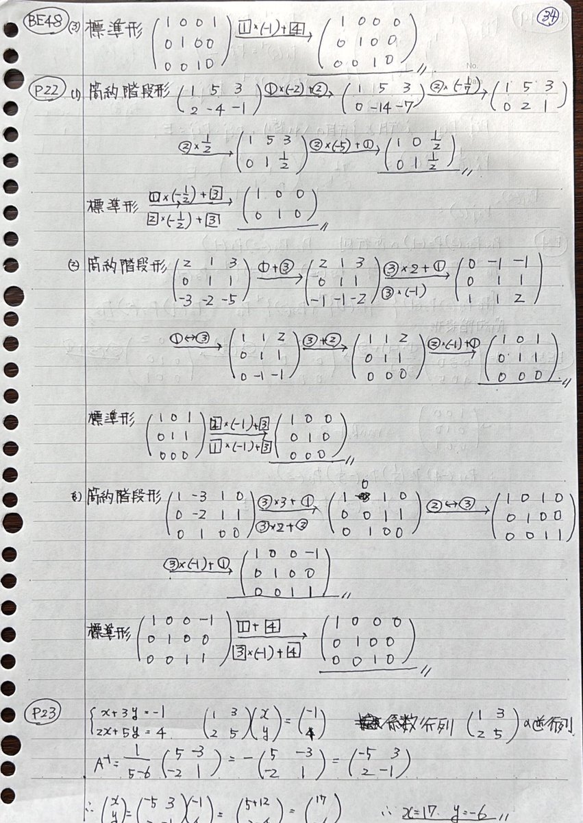 おはようございます☀ 簡約階段形から標準形へ。 行基本操作と列基本操作を使ってバッサバッサと1or0にしていくのは大変気持ちがいいというか清々しというか🤣 3-1.行列の標準形 3-2.行列の正則性 3-3.逆行列 #チャート式線形代数の基礎 pic.x.com/lTPYzSs9If