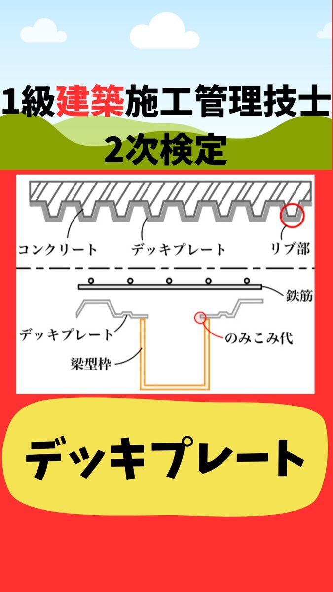 ◆デッキプレート 波形に成形された鋼板で強度を高くしたもの。床の重さを支える材料。 ↓【YouTube shorts解説】 youtube.com/shorts/LYrq0Rc… #1級建築施工管理技士 #2次検定 #建築 #建築施工 #デッキプレート #フラットデッキスラブ #型枠工事 #型枠 # #のみこみ pic.x.com/vpubDbagOh