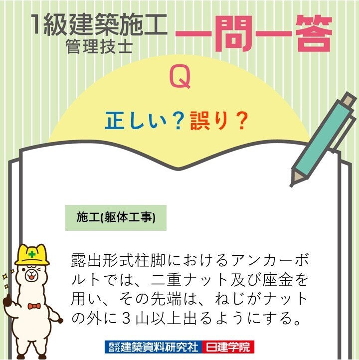 #1級建築施工管理技士 一問一答★ <施工(躯体工事)>から🌱鉄骨工事🌱についての問題です😆 答えは後ほど! pic.x.com/feWGbwmAbF