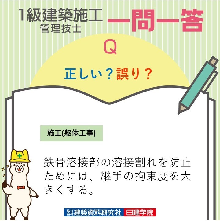#1級建築施工管理技士 一問一答★ <施工(躯体工事)>から🌷鉄骨工事・溶接🌷についての問題です☺️ 答えは後ほど! pic.x.com/R02CkNXyKi