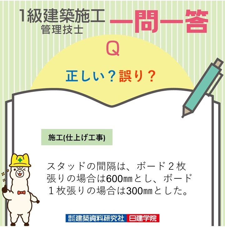 #1級建築施工管理技士 一問一答★ <施工(仕上げ工事)>から🌿軽量鉄骨壁下地🌿についての問題です😉 答えは後ほど! pic.x.com/V20Far8vXS