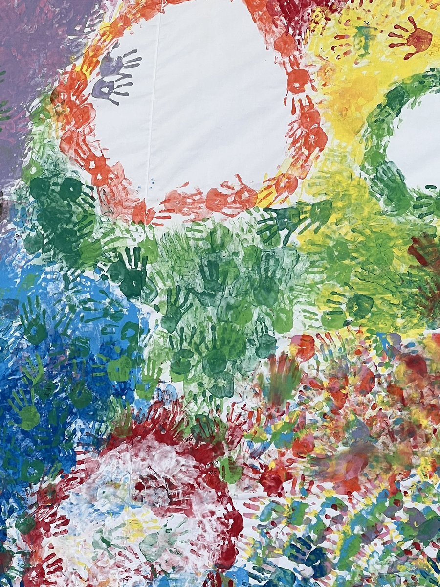 10歳になった地域の小学生たちが10年間を表す10個の白い円の周りをそれぞれの色のハンドスタンプで埋めていくという鮮やかで美しい絵画をお祝いに寄せました #OPAM #大分県立美術館 #10周年記念 #LINKS #坂茂 #開会式 午後から田沢館長と #アートトーク します🌿 pic.x.com/RqyH7fDdYg