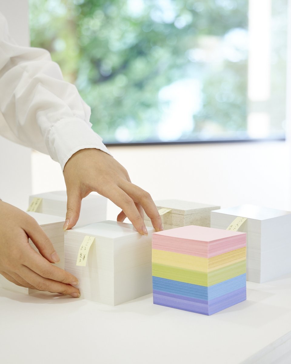 ◎パナソニック「重なりが彩るくらし」 完成品を買うだけでなく、自ら素材を選び、使い続ける10年後を想定。質感や色の多彩な紙を積層し、余白に部品を収めることで、紙が外装と骨格を兼ねる構造が提案されています。「使う」と「作る」の境界がほどけていくような作品です。 #10年後の紙とくらし pic.x.com/F7sybnthFa