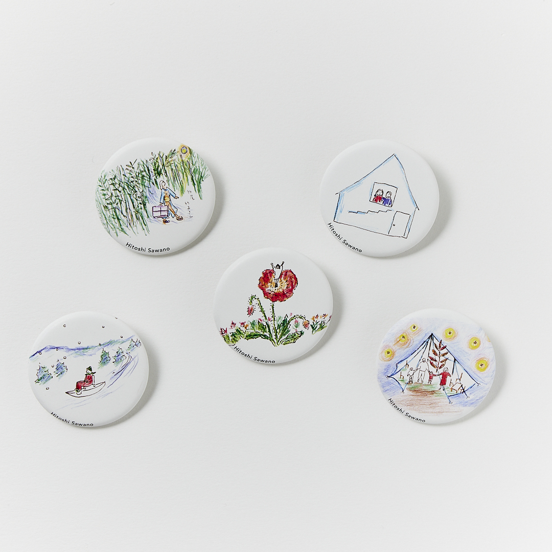 【見本帖本店展示】 開催中のTAKEO PACKAGE EXHIBITION 2025「#10年後の紙とくらし」では、アンケートにご回答いただいた方、竹尾のSNSをフォローいただいた方に缶バッジをプレゼント!沢野ひとしさんが本展のために描いたイラストレーション5種類のオリジナル紙製缶バッジをぜひお持ち帰りください。 pic.x.com/SUwN5lCgNd x.com/takeopaper/sta…