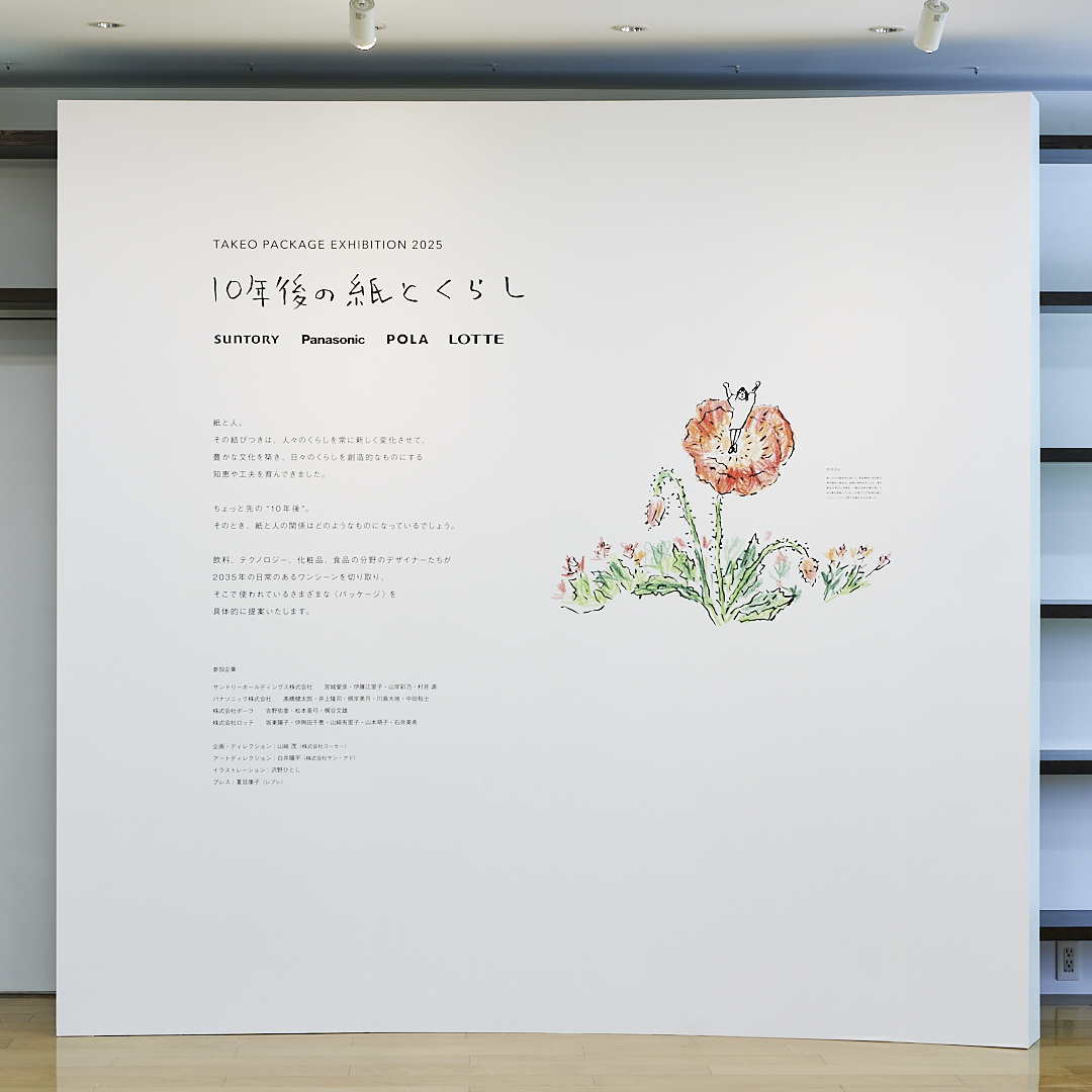 【見本帖本店展示】 TAKEO PACKAGE EXHIBITION 2025「#10年後の紙とくらし」本日よりスタートです!飲料、テクノロジー、化粧品、食品の分野から4社のインハウスデザイナーが参加。#少し先の今 のくらしと多様なパッケージを提案します。 11月4日|火|― 12月25日|木|11:00-18:00 土日祝/休
