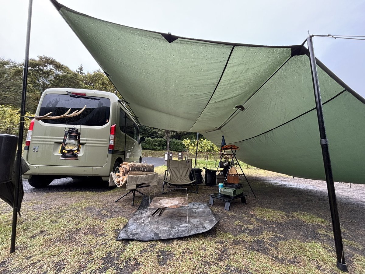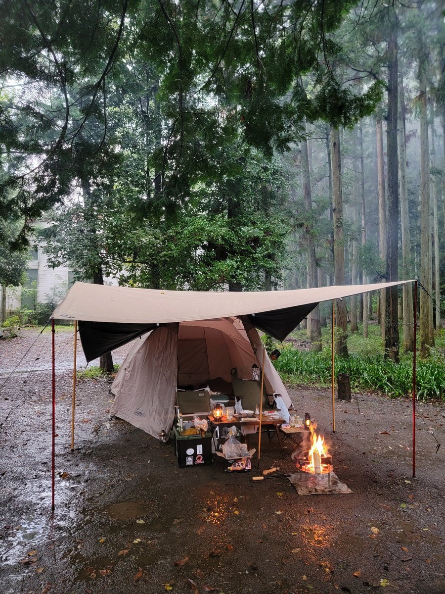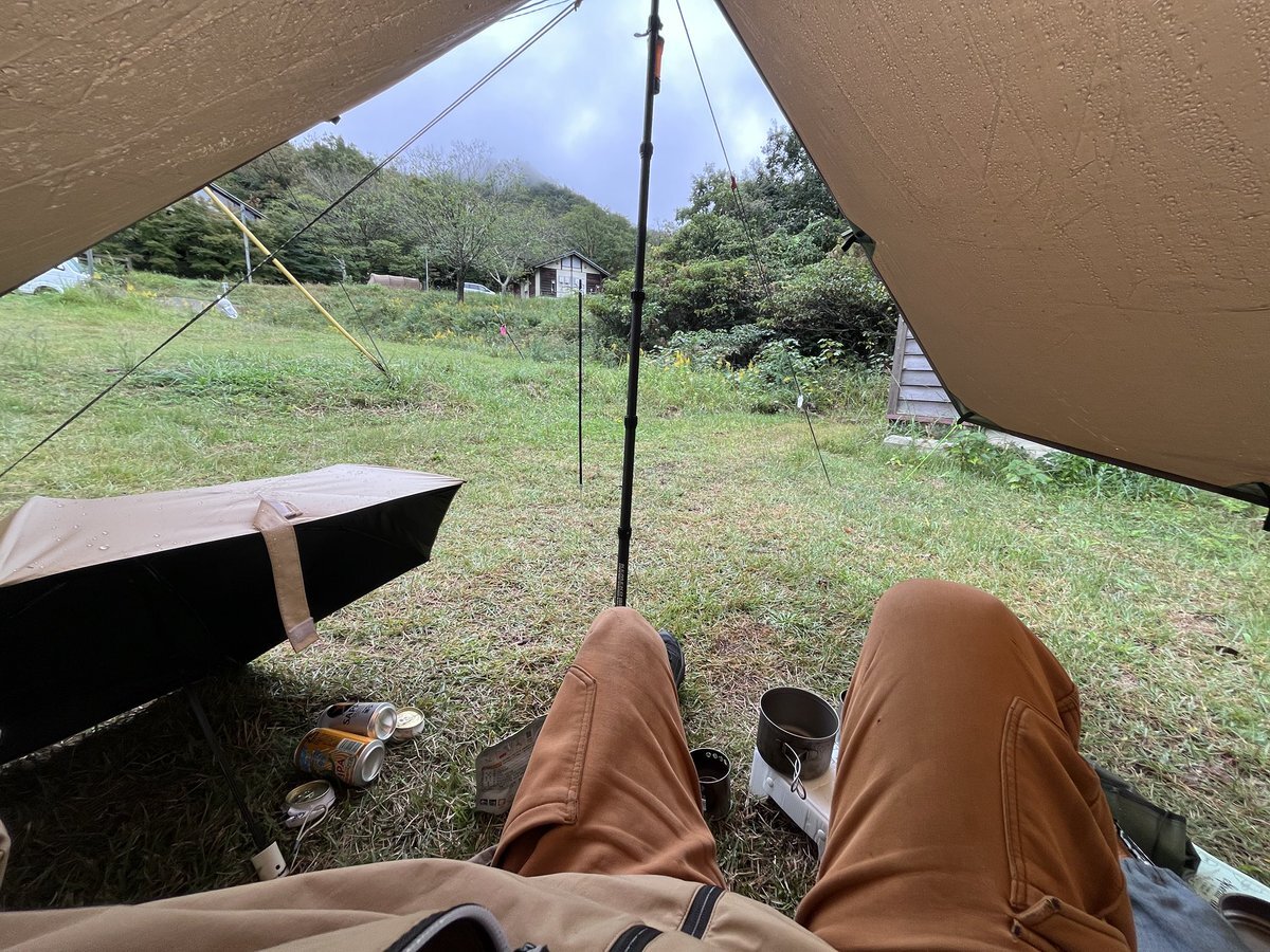 両日とも雨キャンとなりました☂️ 雨男σ(・ω・`) しかし焚き火も出来たし雨音も良かった 撤収だけがアレでした(´-ω-)ウム @椿荘 @滝沢園 #10月のキャンプを写真4枚で振り返る pic.x.com/Nmb7ve4uAV