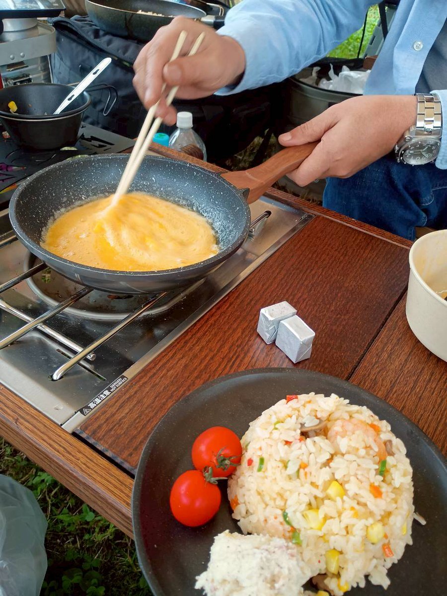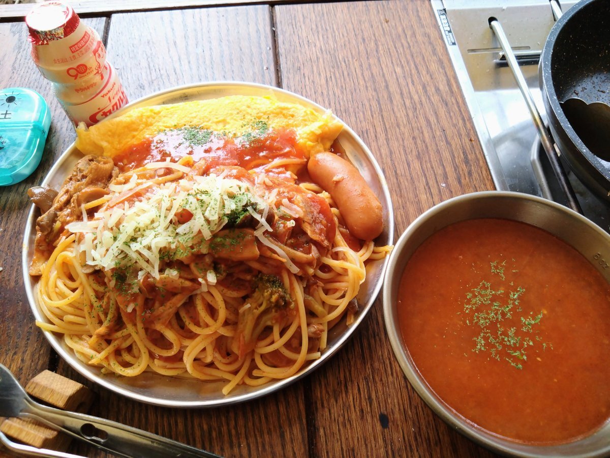 オムライス作って、ボルガライス作って、ロールキャベツトマト煮→オムスパ🍝からの、お祝いすき焼き🍲 玉子ばっかり食べます🥚 #10月のキャンプを写真4枚で振り返る pic.x.com/O1Szs3Xc3v