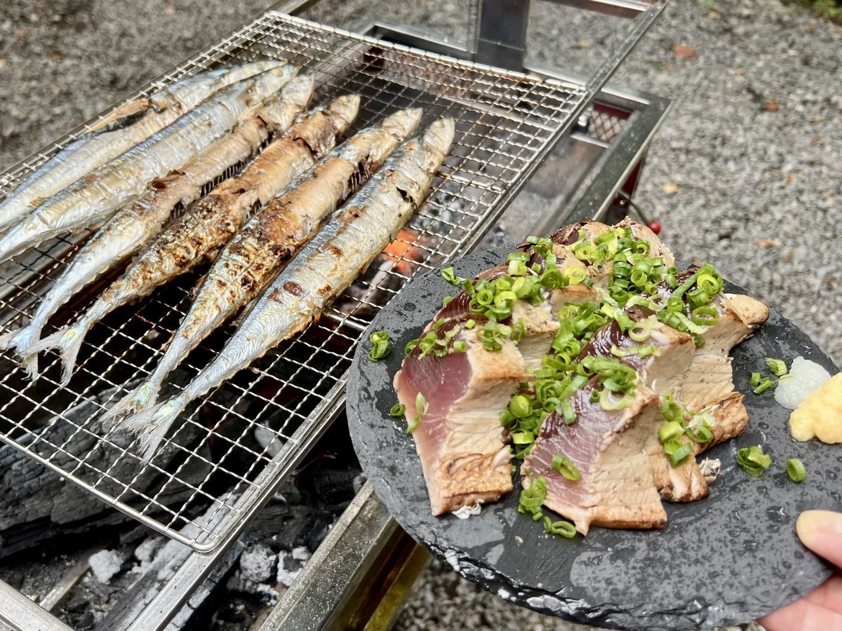 #10月のキャンプを写真4枚で振り返る 食ってばかりの10月のキャンプ🤣 炭火で頂く秋刀魚と鰹の藁焼きは最高でした pic.x.com/N2ZOI7ocfW