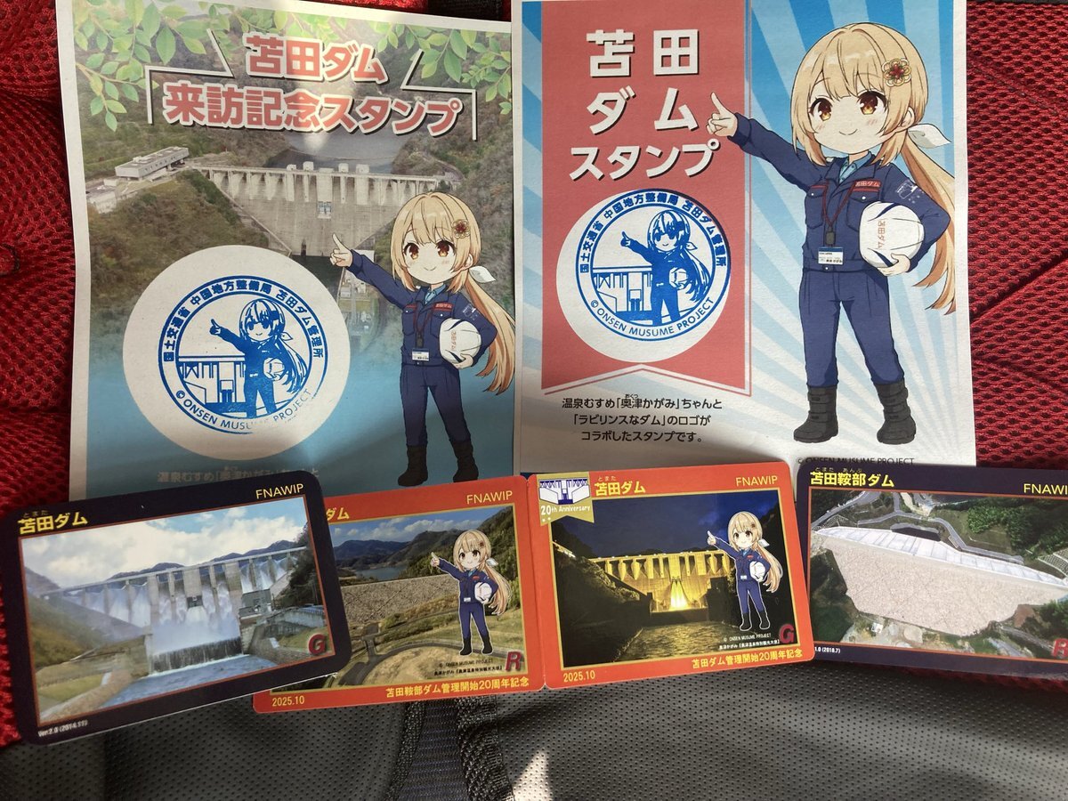 #10月下旬の札活 #ダムカード #苫田ダム20周年記念ダムカード #温泉むすめ #奥津かがみん かがみんは奥津温泉だけじゃなくて 鏡野町のあちこちで忙しく働いているのだ。 ダムで働いてる温泉むすめはかがみんだけじゃない? 湯原や日中ですらやってない pic.x.com/qZ5IsCM4Yh