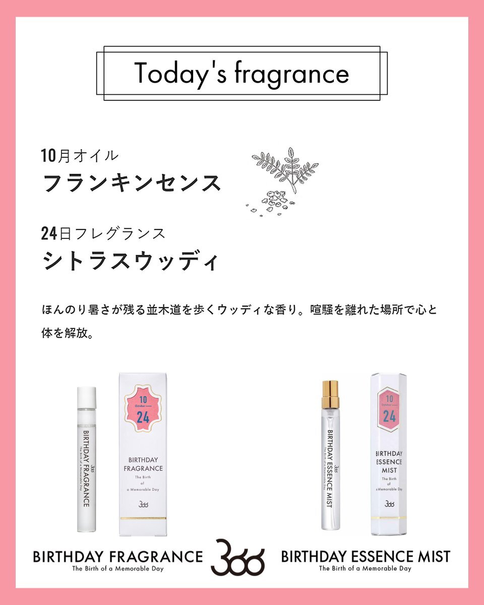 今日10月24日の香りは… 月のオイル: #フランキンセンス 日の香り:#シトラスウッディ ほんのり暑さが残る並木道を歩くウッディな香り。喧騒を離れた場所で心と体を解放。 #バースデーフレグランス #10月生まれ #誕生日香水 🎁SHOP🎁 f-room.shop/pages/366 pic.x.com/kRX4j8bsAN