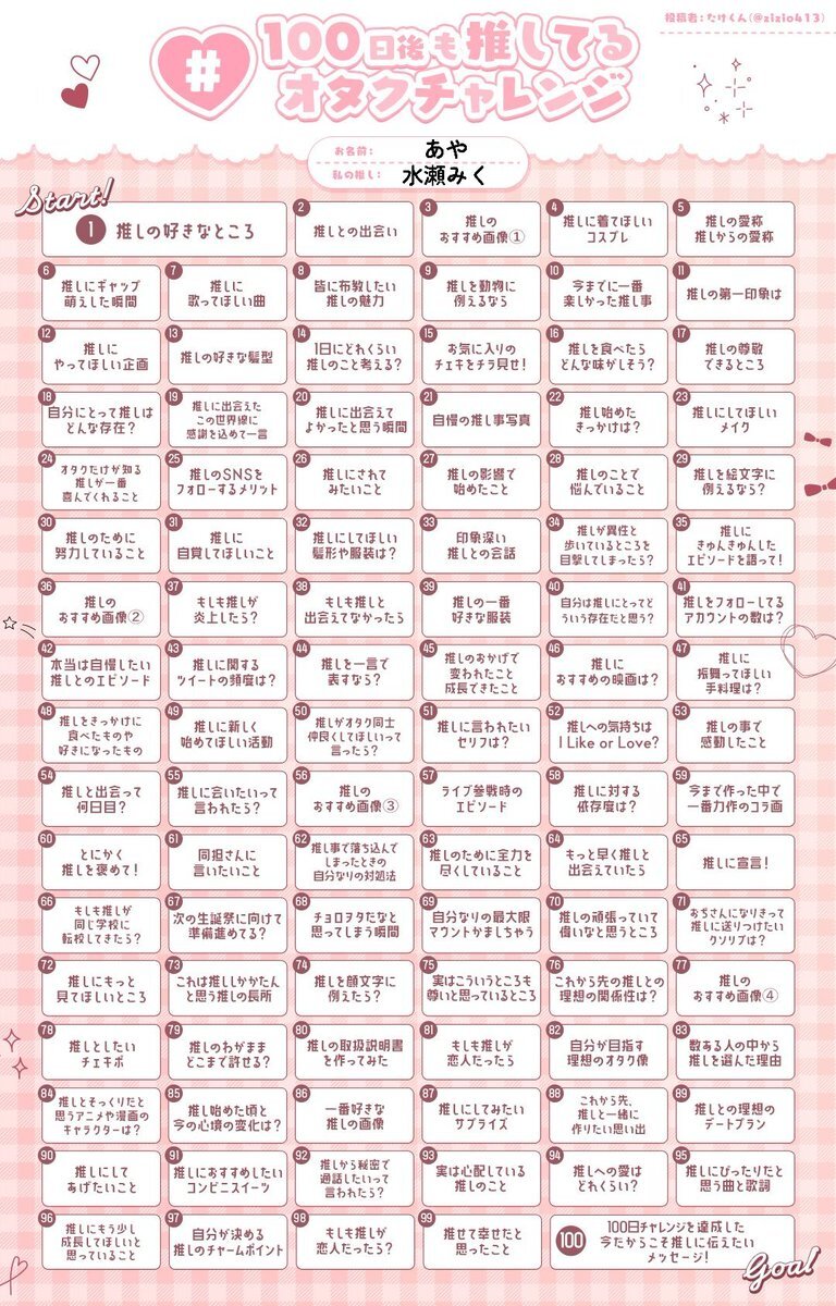 あやめ(@yowamushi_ayame)との100日 #100日後も推してるオタクチャレンジ DAY1 あやめにずっと好きでいてもらえるオタクでありたい でもめっちゃ悲しませてるからあんまり悲しませないオタクで pic.x.com/Evhdggrbrp