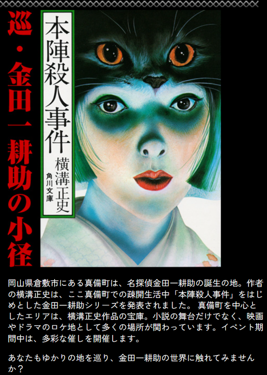 今日は #ミステリー記念日 横溝正史にハマってた時期があります🐼 先日たまたま見た「獄門島」📺の中に知ってる景色がチラホラ。 ロケ地、近かったんだな😆 ところで、真備町のコスイベ #1000人の金田一耕助 の締め切りも間近❗ たくさんの金田一耕助が歩きますよ💕 #石井表記 #金田一耕助役と言えば pic.x.com/SIH4WyVx8z