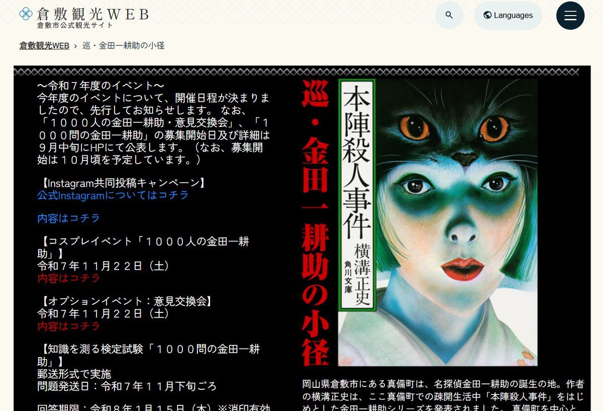 「真備町のコスイベ #1000人の金田一耕助 の締め切りも間近」とありますが、正しくは募集前です 募集開始は10月15日から ※今日は7日です(後々、確認しやすいように日付記載) x.com/ih_sns/status/…