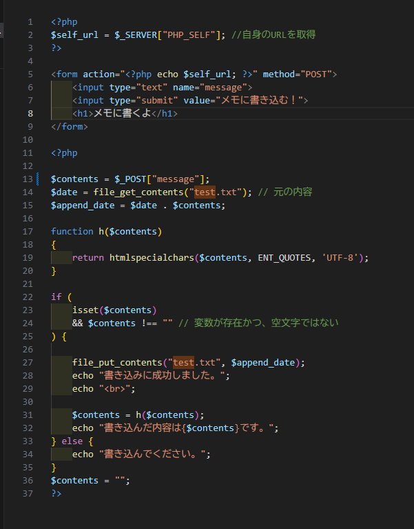 #100DaysOfCode 9/100 フォームに入力された文字を同じディレクトリ内のテキストファイルに追記するプログラムを書きました htmlspecialcharsをどこに記述するか迷い調べてみると データに手を加える可能性がある以上HTMLとして出力する直前に記述したほうがいいとの情報 pic.x.com/iMdIgOHQNS