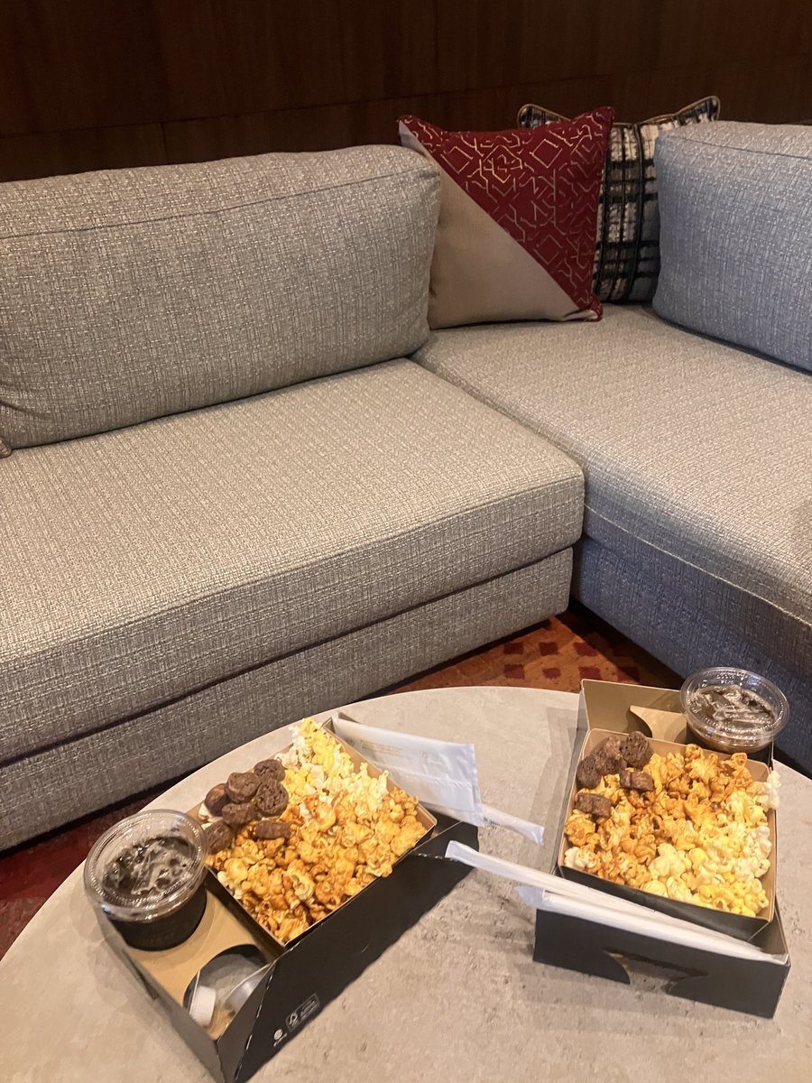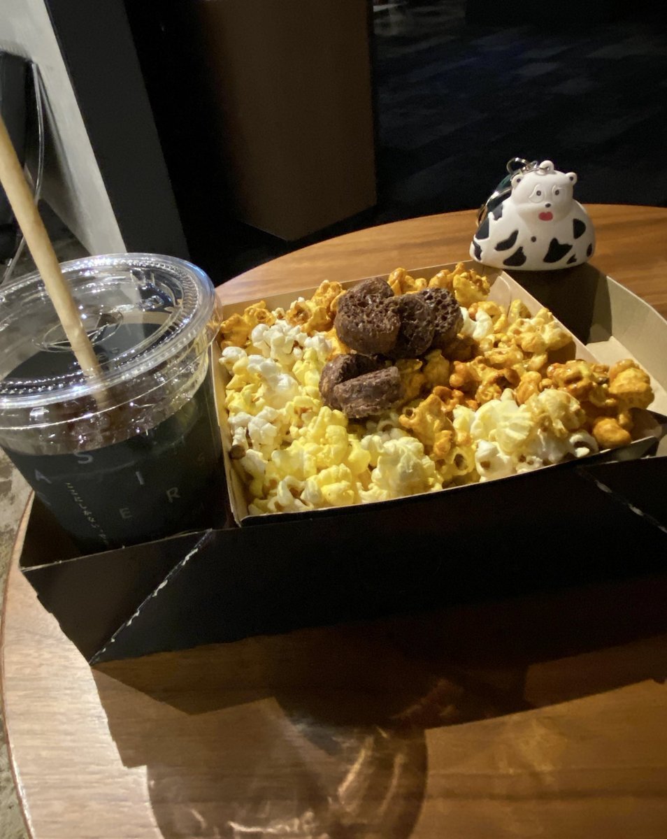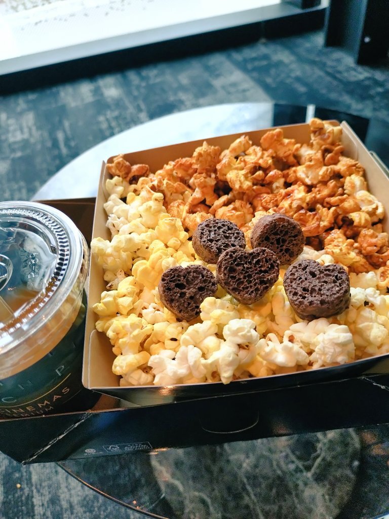 ハートチョコはランダムだそうです。食べてる途中で🩷が多めなの気づいて撮ったからはじめはもっとあったよ。少しラッキーな気分🩷カウンターのお姉さんが私がドリンク氷なし希望したの覚えててくれて、2杯目もらいに行った時も氷なしですか?て聞いてくれてうれしかったな #109シネマズプレミアム新宿 pic.x.com/7VkqnmULzh
