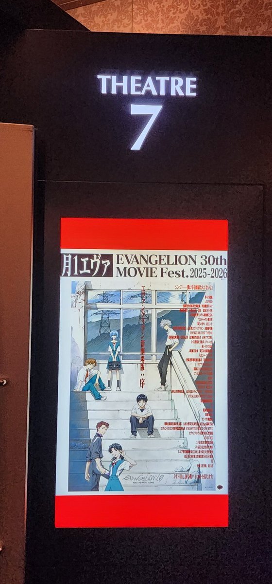 #月1エヴァ EVANGELION 30th MOVIE Fest. 2025-2026 ヱヴァンゲリヲン新劇場版:序 公開前は旧劇や今ほどの熱狂は無かった。前売り特典も切れることは無かった。公開後は様子がおかしなところがいくつかあり考察も相まって少し話題になった。熱狂は破からの思い出。 #109シネマズ湘南 シアター7 pic.x.com/beXhnIJdpL