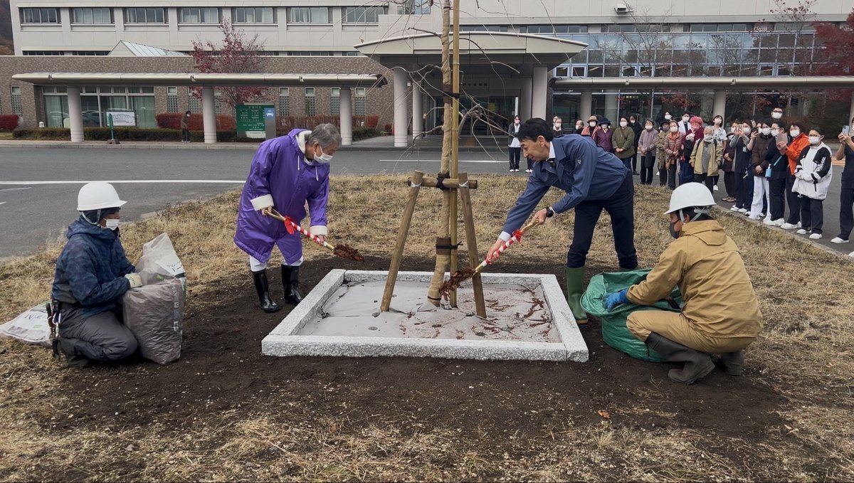 三戸中央病院移転新築25周年を記念し植樹式が行われ、「しだれ桜」が植えられました。 これから季節ごとに美しい姿を見せ、訪れる方々の心をやさしく和ませてくれる存在になりそうです。 #三戸町 #11ぴきのねこのまちさんのへ #三戸中央病院 #しだれ桜 pic.x.com/Omg864rd6U