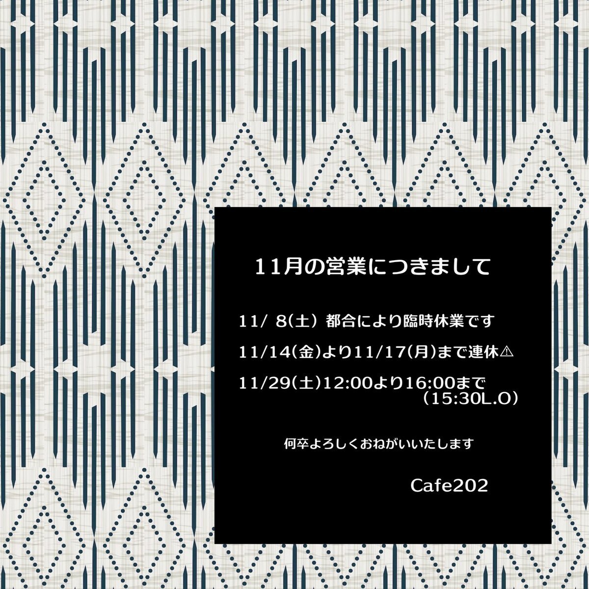 #11月の予定 11月は諸事情により、 11日~18日まで 臨時休業を頂戴いたします。 ご不便をおかけしますが、 よろしくお願いいたします。 ☆11月9日:アロマワークショップ@zoom 満員御礼となりました。 pic.x.com/C4sosJE5bE