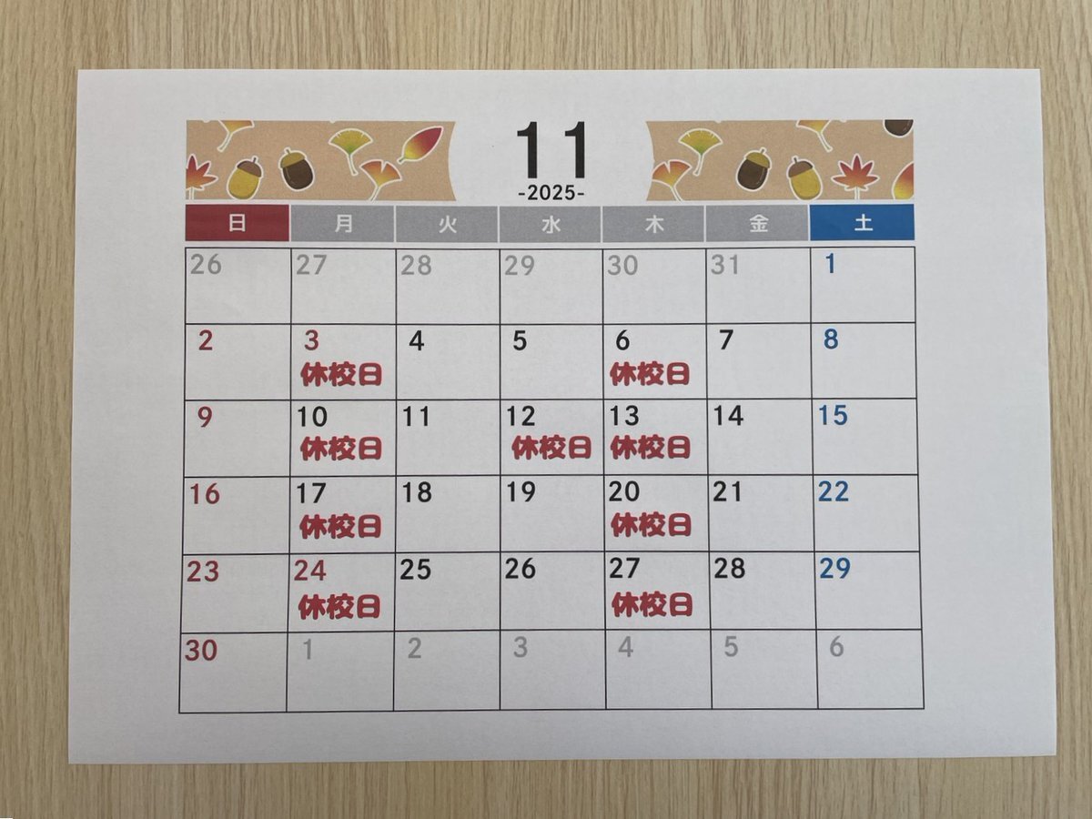 今日から11月ですね。 教室のある二本松市は風は強いですが、日差しのある暖かい天気です。 11月の休校日は写真の通りです。 お問い合わせや教室へいらっしゃる時は気を付けてください。 よろしくお願いします。 #パソコン教室わくわく #パソコン教室 #二本松市 #11月スタート #11月の予定 pic.x.com/4waHnsoijU