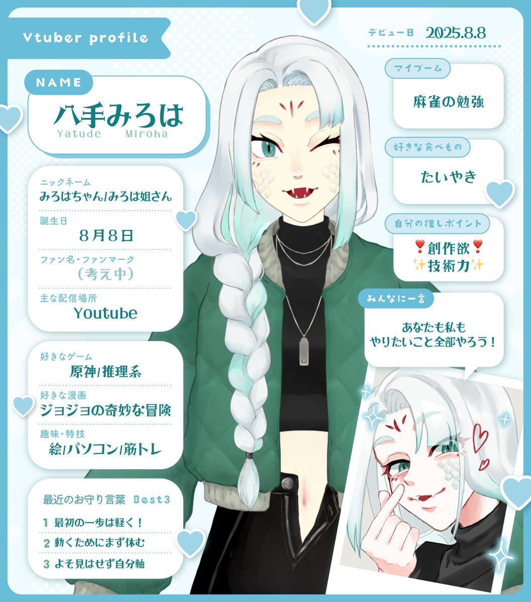 #11月のVTuberフォロー祭り‍ #新人VTuber やりたいこと全部やるVTuber 八手みろは🐍💚🫰 💚"やりたい"を愛するメロい蛇V 🤍#やってみろは で、あなたのやりたいも応援✨ 🤍週1配信でゆるっと活動 💚謎解き/ボドゲ/雑談 etc 🎙️ YouTube|youtube.com/@yatsudemiroha 📓 note|note.com/yatsudemiroha pic.x.com/Wjk3umHs4Y