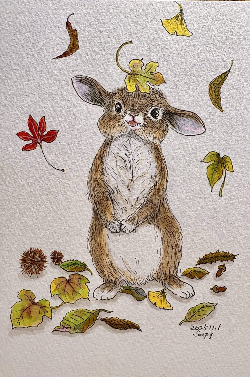 #ミリペン #水彩マーカー #うさぎ #くりまる #落ち葉 #11月もよろしくお願いします #インクトーバー2025 インクトーバーは終わりましたが、Dealのお題でもう一つの案であったものです^ ^ pic.x.com/77BD9Jx9DL