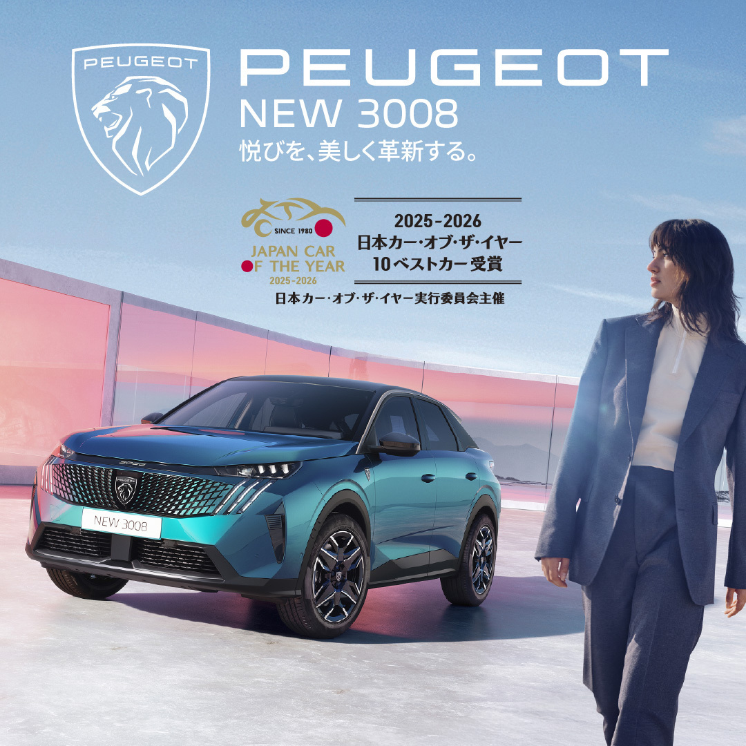 【PEUGEOT 3008 – 日本カー・オブ・ザ・イヤー 10ベストカー選出🏆】 このたび、PEUGEOT 3008が「日本カー・オブ・ザ・イヤー 2025-2026」において 栄誉ある「10ベストカー」に選ばれました。 3008は、プジョー独自のデザイン哲学“Allure(魅力)”を体現するSUV。
