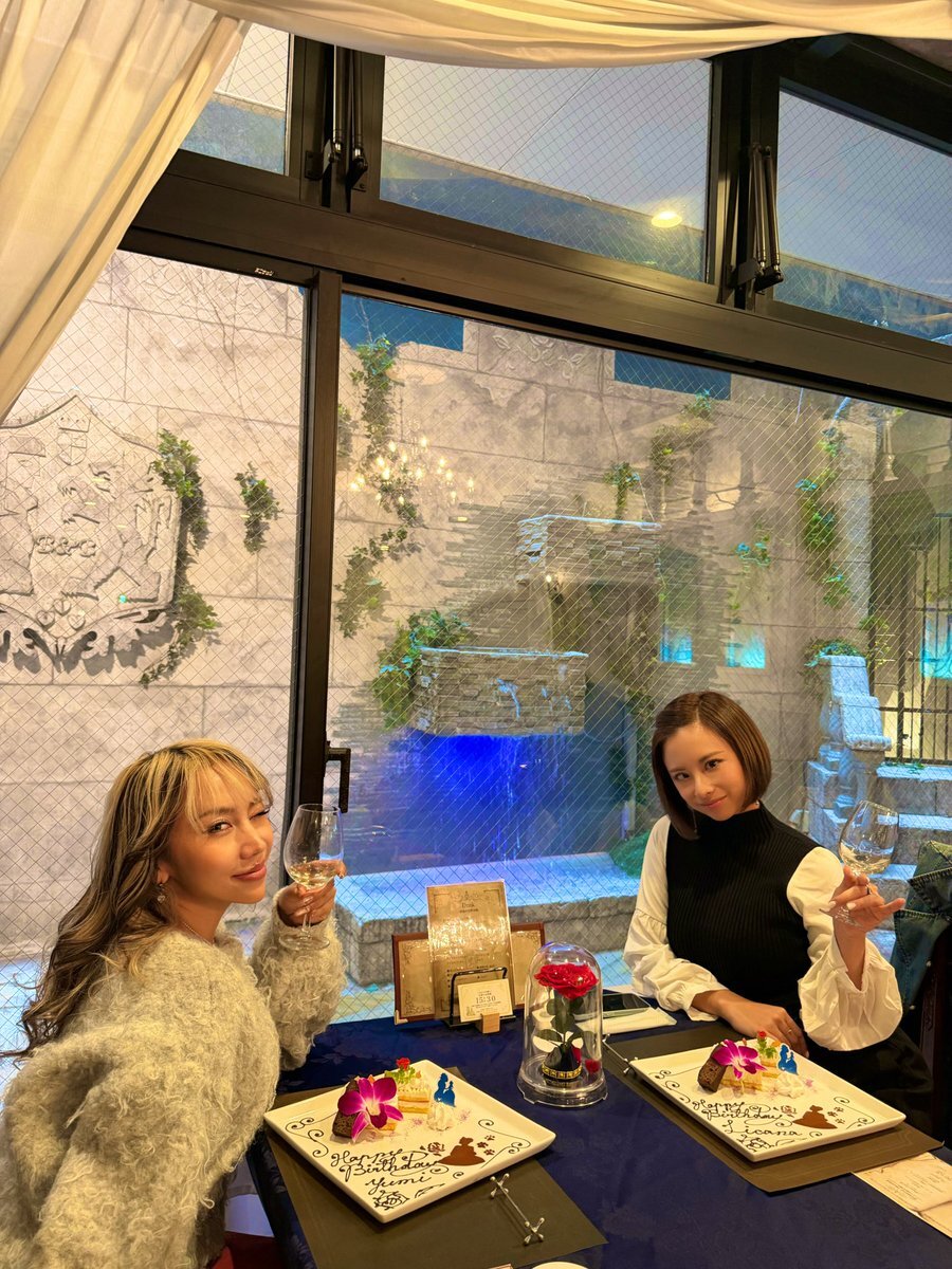 大好きな @yumiobabyと 大好きな #美女と野獣 の レストランで🍽️🎁🥀 昼間からシャンパンで乾杯とか... 大人になったよね🥺 今年もお祝いできてよかった🫰 また旅行行こうね✈️ #11月生まれ pic.x.com/FDhtWPTfiW